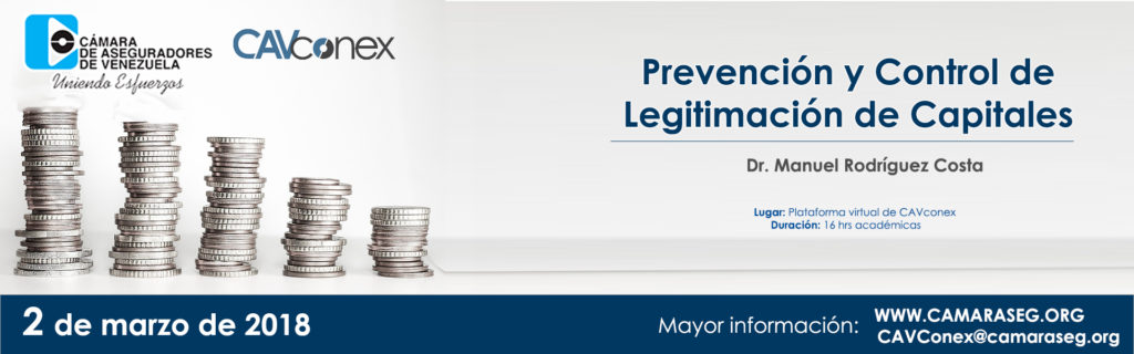 CAV dicta curso sobre Prevención y Control de Legitimación de Capitales (Prensa CAV.-) La Cámara de Aseguradores de Venezuela (CAV), llevó a cabo el curso de “Prevención y Control de Legitimación de Capitales”, este 2 de marzo de 2018 a través de la plataforma virtual de CAVconex. El objetivo de la actividad formativa es transmitir a los participantes información útil sobre las regulaciones y ventajas del sistema de prevención y control, dotándolo de este modo con los conocimientos básicos para poder iniciar sus actividades en el sector asegurador. El curso virtual posee dos unidades: “Legitimación de capitales y financiamiento al terrorismo” y “Sistema integral de prevención y control de legitimación de capitales”. La actividad está dirigida a los empleados de empresas de seguros, reaseguros, sociedades de corretaje, así como a aquellos que laboran activamente dentro del sector y que no han recibido una inducción sobre la materia de PCLC-FT. Próximas Actividades Formativas CAV Jueves 15 de marzo, se llevará a cabo 3er Ciclo de Alianzas Formativas CAV “Foro Menpa sobre Derecho y Seguro”. Martes 17 de abril, Curso de “Redescubriendo en los datos mediante el Análisis Exploratorio Estadístico”. Ambas actividades formativas se llevarán a cabo en la sede de la CAV. Para mayor información sobre cómo participar puede visitar www.camaraseg.org o escribir a cavconex@camaraseg.org. Le invitamos a seguir a la CAV a través de sus redes sociales bajo el usuario @camarasegve Twitter e Instagram para estar informado de todas las novedades que comparte esta casa gremial.